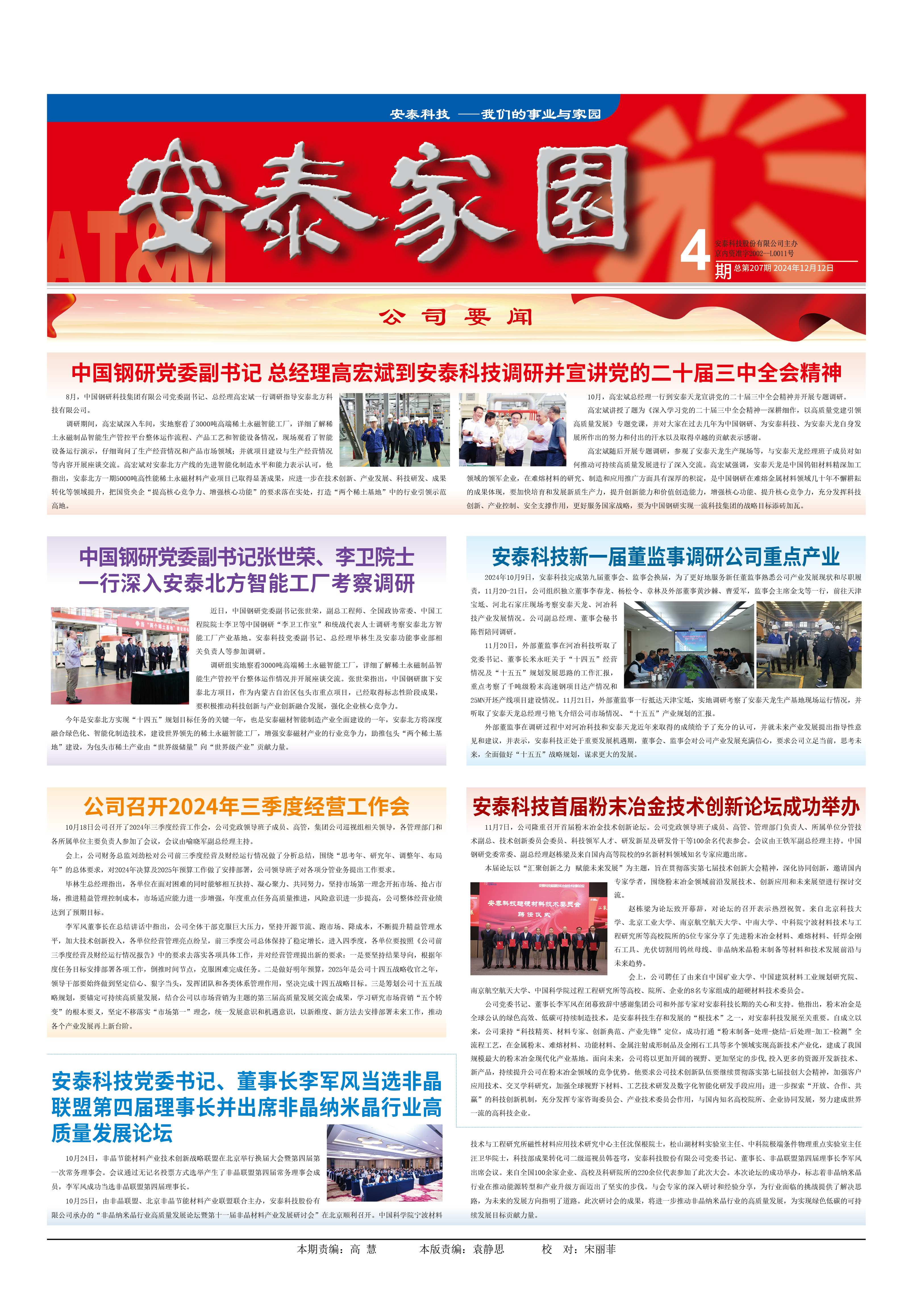高宏斌講授了題為《深入學(xué)習(xí)黨的二十屆三中全會(huì)精神—深耕細(xì)作,以高質(zhì)量黨建引領(lǐng)高質(zhì)量發(fā)展》專題黨課,并對(duì)大家在過(guò)去幾年為中國(guó)鋼研、為安泰科技、為安泰天龍自身發(fā)展所作出的努力和付出的汗水以及取得卓越的貢獻(xiàn)表示感謝。